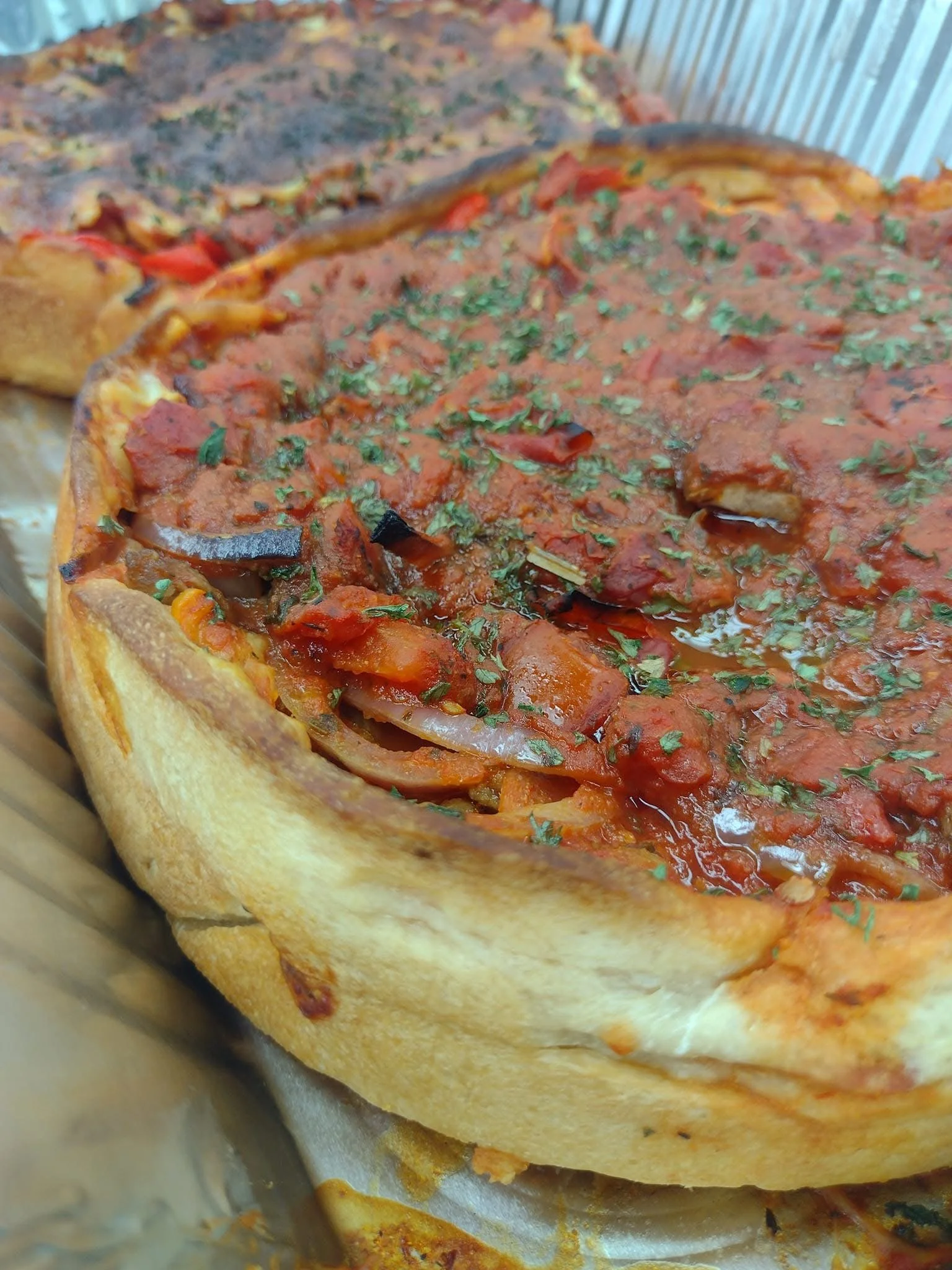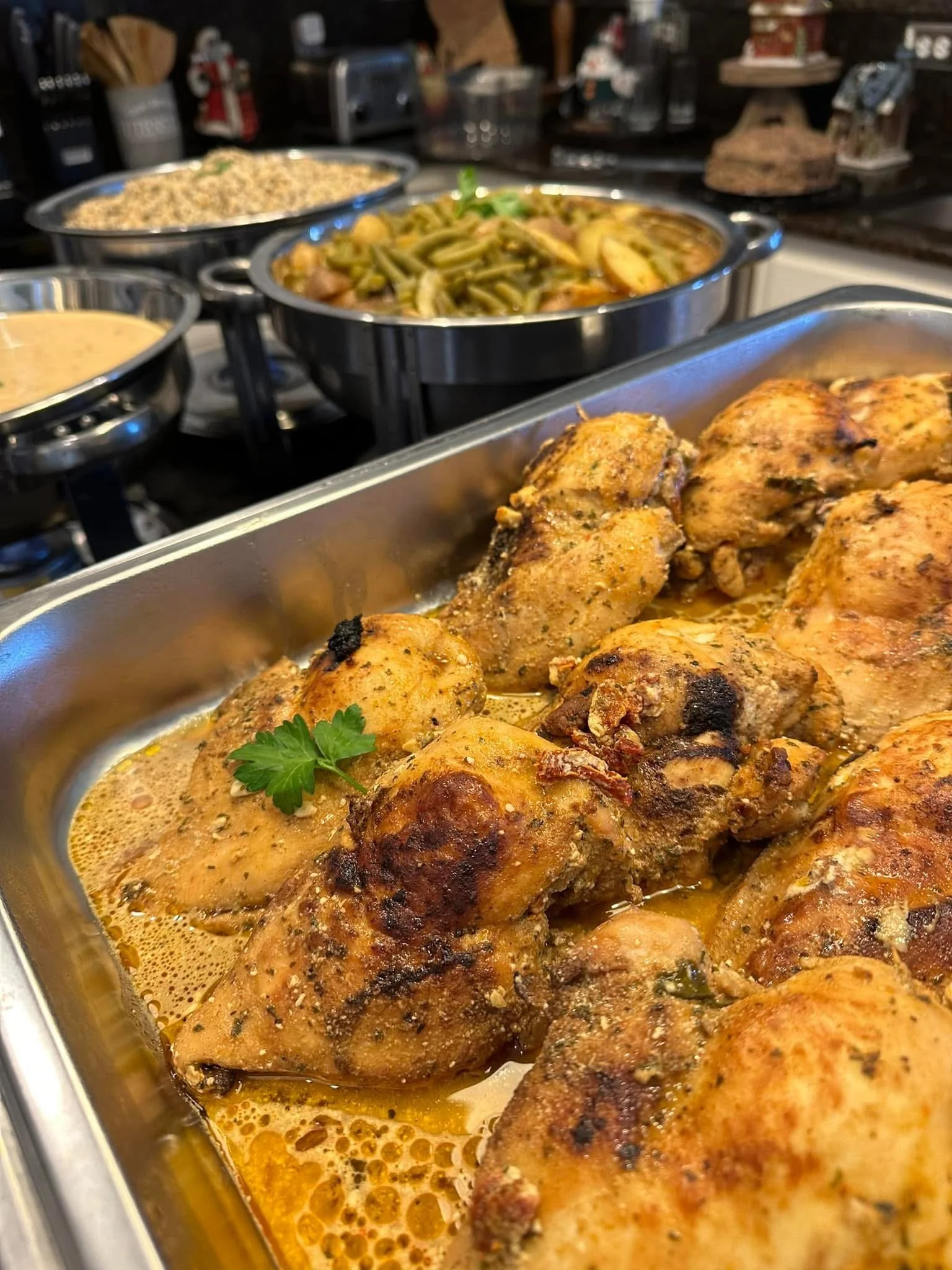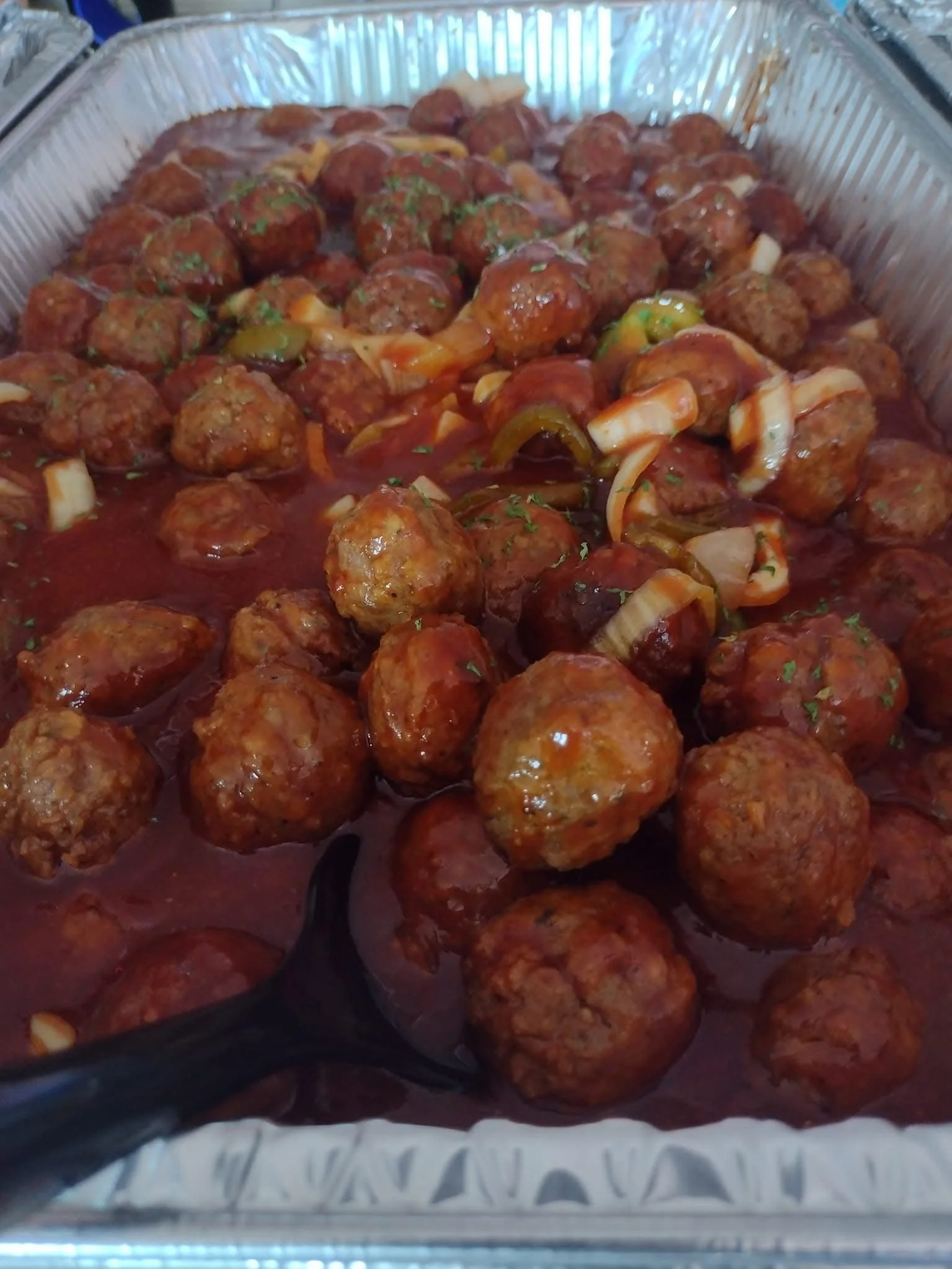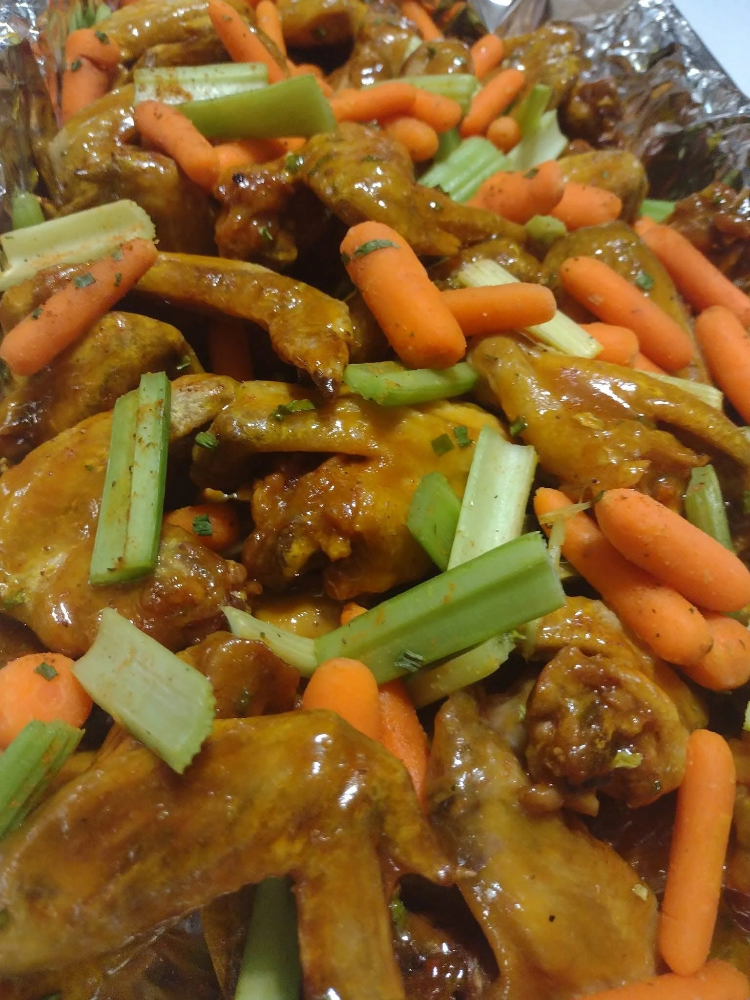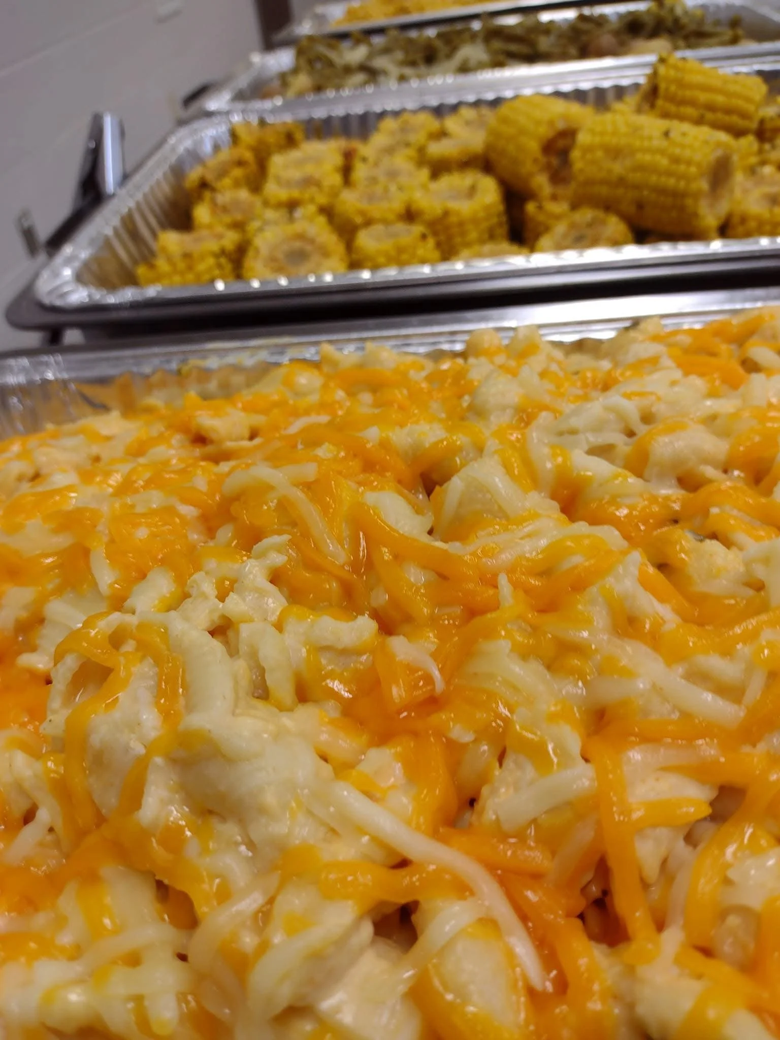 Salad bar with sliced cucumbers, red onions, cherry tomatoes, mixed greens, and two salad dressings on a black table.